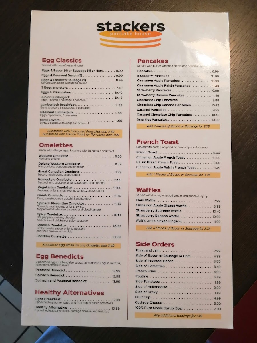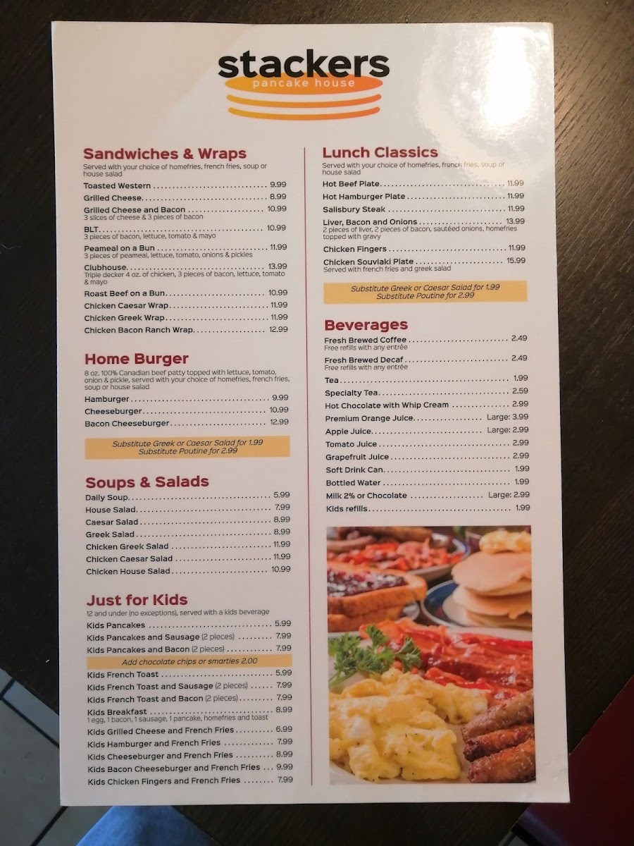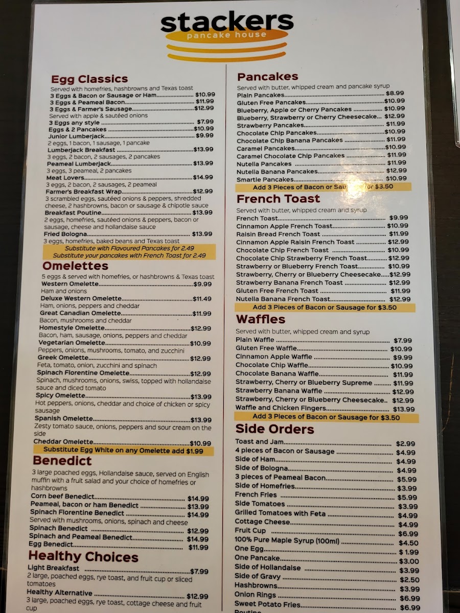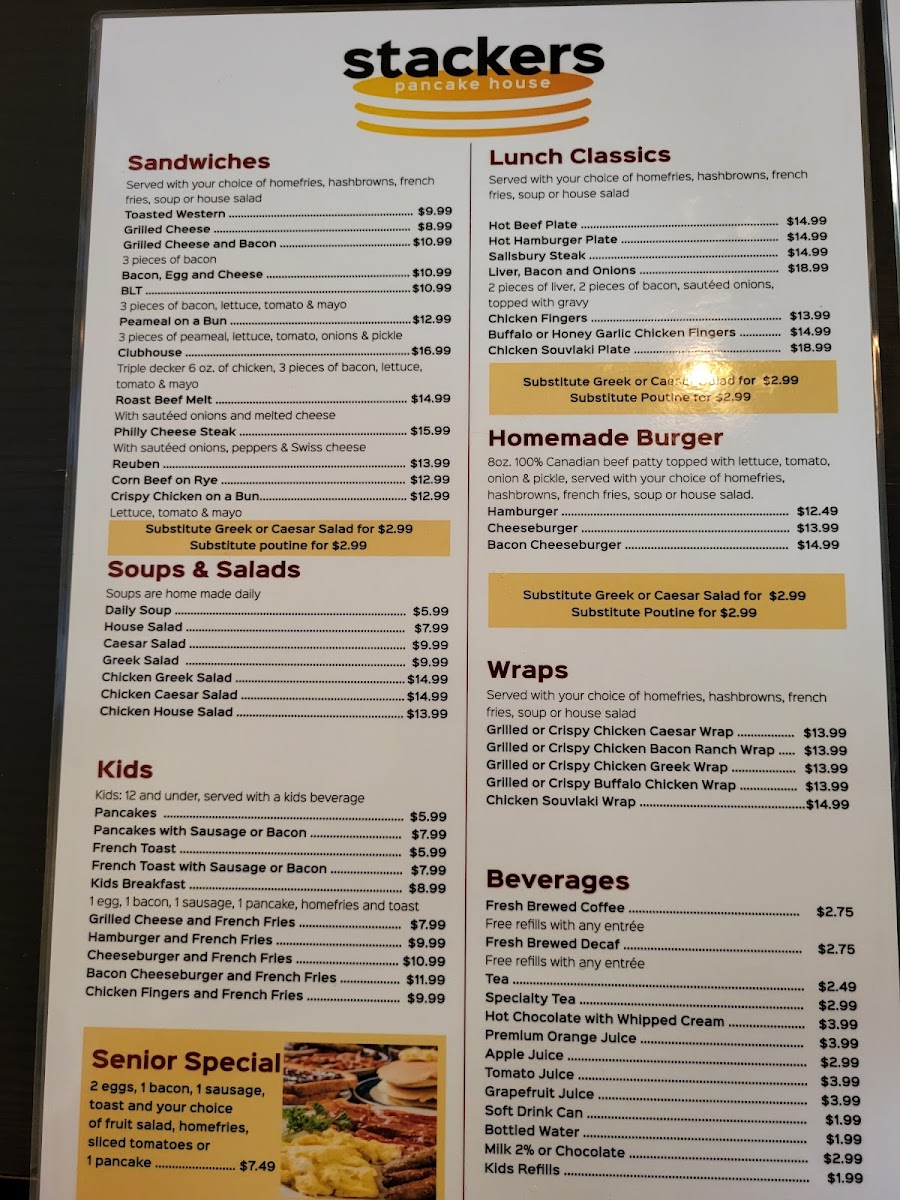 Welcome to Stackers Pancake House, a beloved breakfast spot located at 727 William St, Midland, ON. Renowned for its cozy atmosphere and friendly service, this establishment captivates locals and visitors alike. The menu is a delightful blend of classic breakfast fare, highlighted by their famed, oversized pancakes that leave diners raving about portion sizes and flavors.